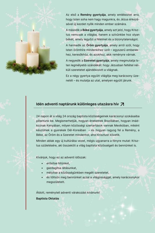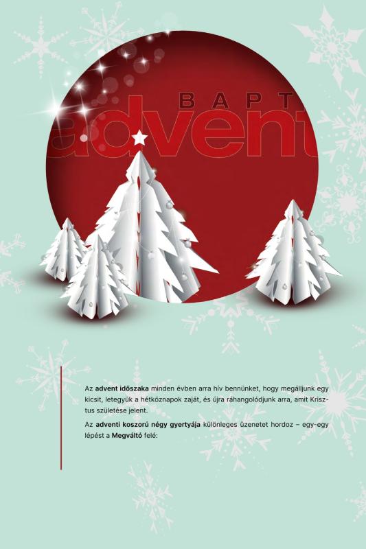 Az advent időszaka minden évben arra hív bennünket, hogy megálljunk egy kicsit, letegyük a hétköznapok zaját, és újra ráhangolódjunk arra, amit Krisztus születése jelent.