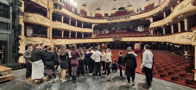 Egy különleges kulisszajáráson vettünk részt, ahol bejárhattuk az egész színházat. Megnézhettük a backstage világát, megtekinthettük a híres „lebegő folyosót”, sőt még a színpadi havat is megtapinthattuk. A program során a színészek öltözőibe is betekinthettünk, így igazán közelről ismerhettük meg a színház varázslatos világát.