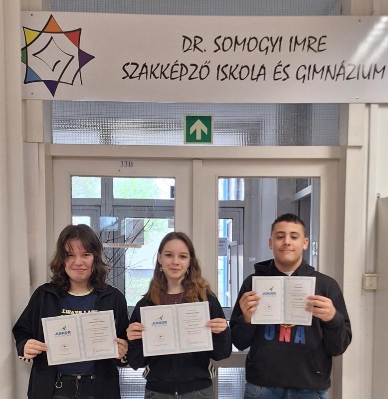 Büszkeséggel tölt el bennünket, hogy iskolánk három 7.a osztályos tanulója junior nyelvvizsgán vett részt, és mindhárman sikeresen teljesítették azt. A befektetett munka és a kitartó felkészülés meghozta eredményét, így már mindannyian nyelvvizsga-bizonyítvánnyal gazdagodtak. Intézményünk rendkívül büszke rájuk, és szívből gratulálunk ehhez a kiemelkedő teljesítményhez!